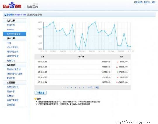 許多第三方網(wǎng)站的管理員最喜歡用百度site網(wǎng)站,以評估自身的百度表現(xiàn),不過,可能很多人不知道,site的數(shù)據(jù)其實并不準(zhǔn)確,site出來的結(jié)果和實際情況有時候偏差極大,經(jīng)常會嚴(yán)重誤導(dǎo)管理員,不過現(xiàn)在大家可以拋棄這個不靠譜的數(shù)據(jù),使用百度站長平臺提供的索引量查詢了,該查詢甚至做到了每日更新,而且,是索引量而非收錄量,根據(jù)筆者估計,收錄和索引其實是2個概念,只有真正索引的頁面才會真正參與關(guān)鍵詞排序,而收錄可能只是短期收錄。并且,這個工具的圖表結(jié)構(gòu)。終于把一些朋友從每天site幾十個客戶站點然后用excel表格記錄收錄量的苦逼工作解放出來了