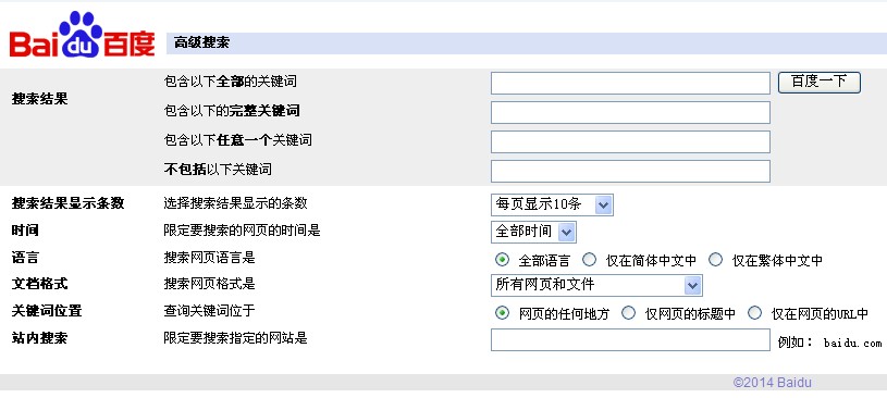 利用百度的高級(jí)搜索功能,http://www.baidu.com/gaoji/advanced.html