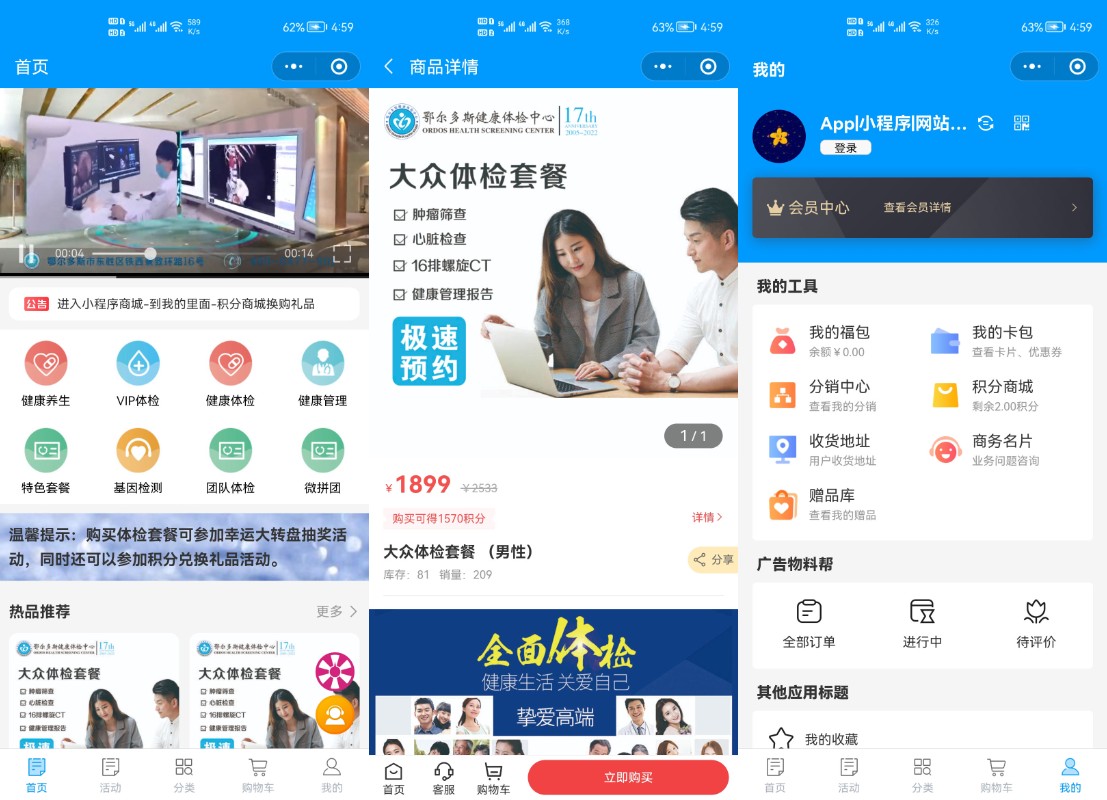 一個綜合體檢的小程序,包含體可寶商城、核驗碼預約檢測、二維碼預約、檢測報告查詢、FAQ等功能。