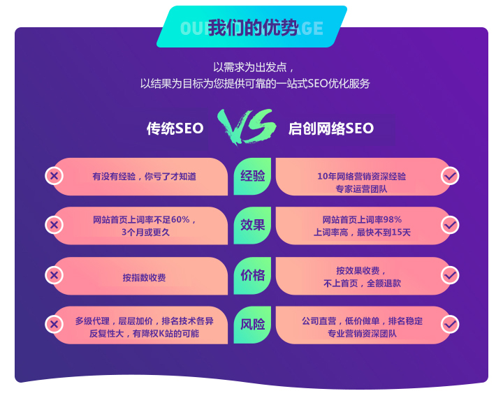 專業(yè)化的團隊、排名穩(wěn)定首頁,點擊不扣費、不上首頁不扣費